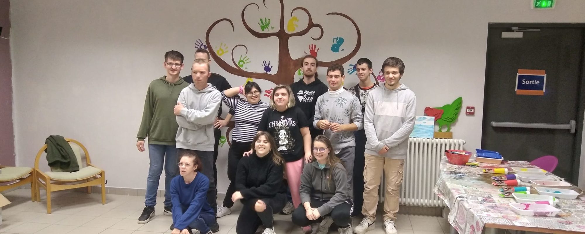 Un groupe d’apprenants Moniteur Educateur au CEFRAS, est intervenu auprès des jeunes pour un projet de décoration murale (coin salon) et la création d’une bibliothèque en bois.
