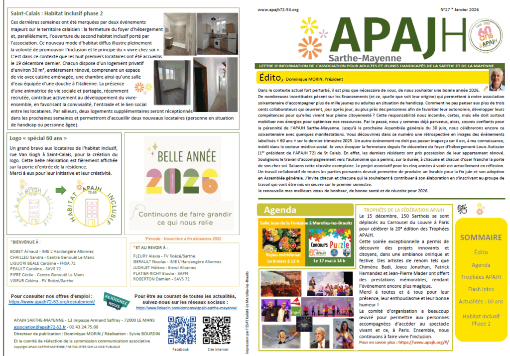 Nous avons le plaisir de vous partager la nouvelle édition du journal associatif de l’APAJH Sarthe-Mayenne (n°27).