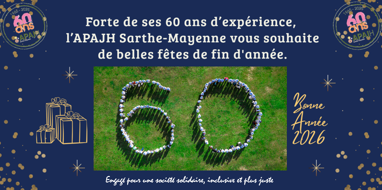 Dominique MORIN, Président et Noura DJERIDI, Directrice générale de l’APAJH Sarthe-Mayenne vous envoient leurs meilleurs vœux !