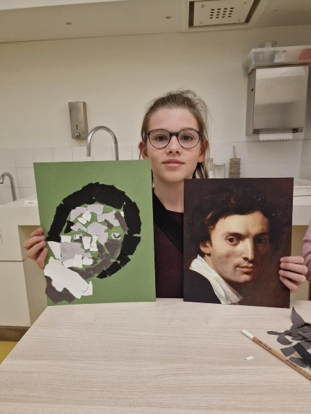 Atelier immersif au Louvre (2h30) : découverte du portrait, technique du déchirage, travail sur ombres et lumières. Un moment riche en imagination, motricité fine et fierté.