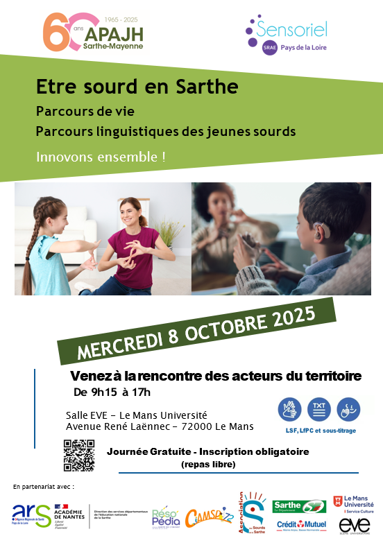 Venez à notre rencontre le 8 octobre ! Colloque « Etre sourd en Sarthe » – Salle Eve – Le Mans