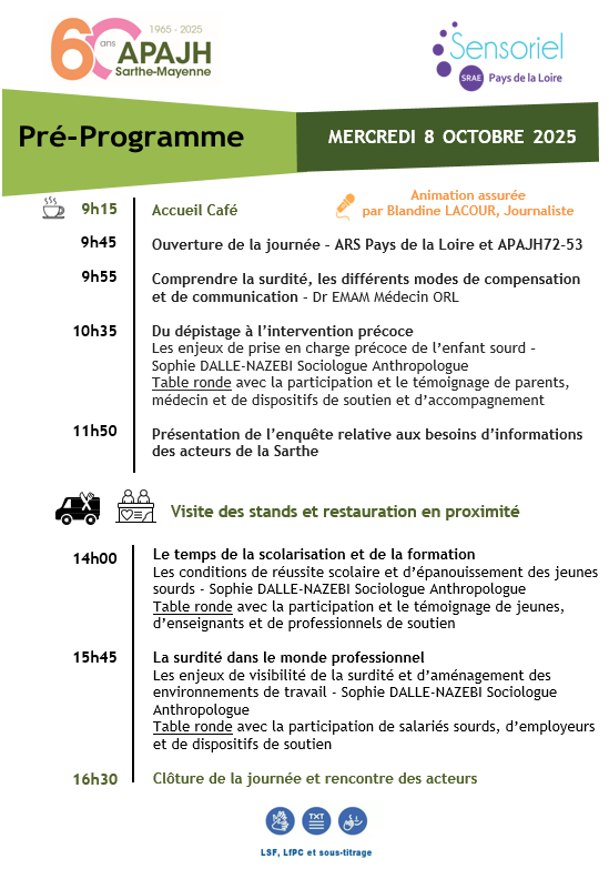 Cette journée vous est proposée par l’Apajh Sarthe Mayenne et la SRAE Pays de la Loire