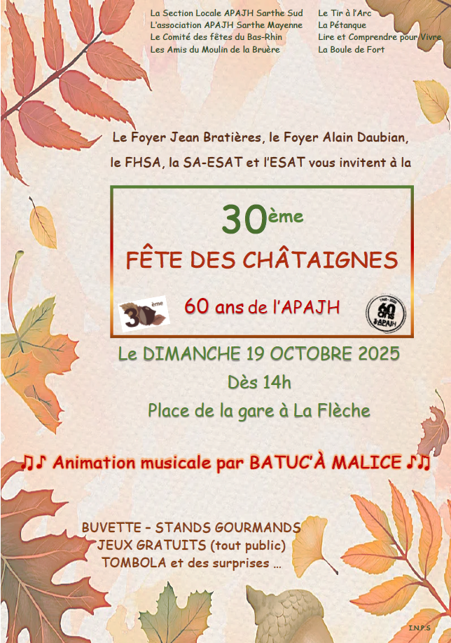 Venez nombreux ce dimanche 19 octobre à la 30ème fête des châtaignes ! 14 octobre 2025 VIE ASSOCIATIVE